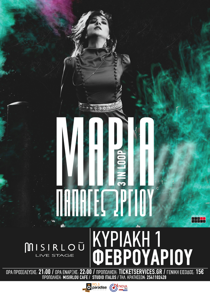 Η Μαρία Παπαγεωργίου, ύστερα από 15 χρόνια ιδιαίτερης και απόλυτα προσωπικής διαδρομής και επιλογών, που την καθιέρωσαν ως μία από τις σπουδαιότερες ερμηνεύτριες του τραγουδιού του σήμερα - και του τραγουδιού που θα έρθει, ταξιδεύει αυτό το χειμώνα σε επιλεγμένους χώρους στην Ελλάδα,με το ιδιαίτερο project «3 In Loop» .
