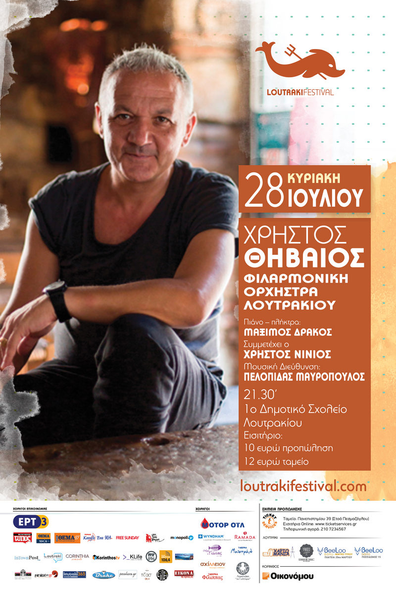 Η περσινή συνεργασία του Χρήστου Θηβαίου με το Σύνολο Δωματίου της Φιλαρμονικής Ορχήστρας Λουτρακίου άφησε τις καλύτερες εντυπώσεις τόσο στους καλλιτέχνες, όσο και στο κοινό. Γι' αυτό και δεσμευτήκαμε να την επαναλάβουμε και φέτος έχουμε τη χαρά να τον φιλοξενούμε μαζί με την Φιλαρμονική του Δήμου μας στο Λουτράκι και όχι μόνο, μια που η έναρξη αυτής της συνεργασίας θα εγκαινιαστεί στο Ρωμαϊκό Ωδείο Πάτρας, στο πλαίσιο του Διεθνούς Φεστιβάλ Πάτρας, στις 17 Ιουλίου.