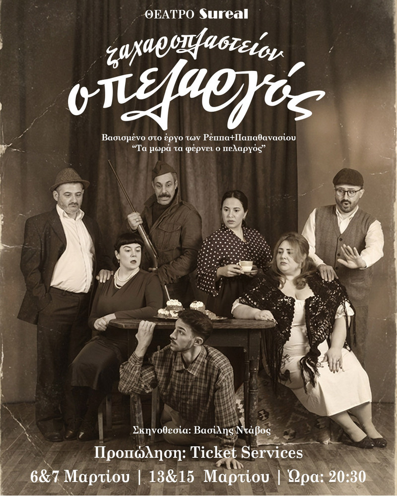 Στο έργο μας, «Ζαχαροπλαστείον ο Πελαργός»,